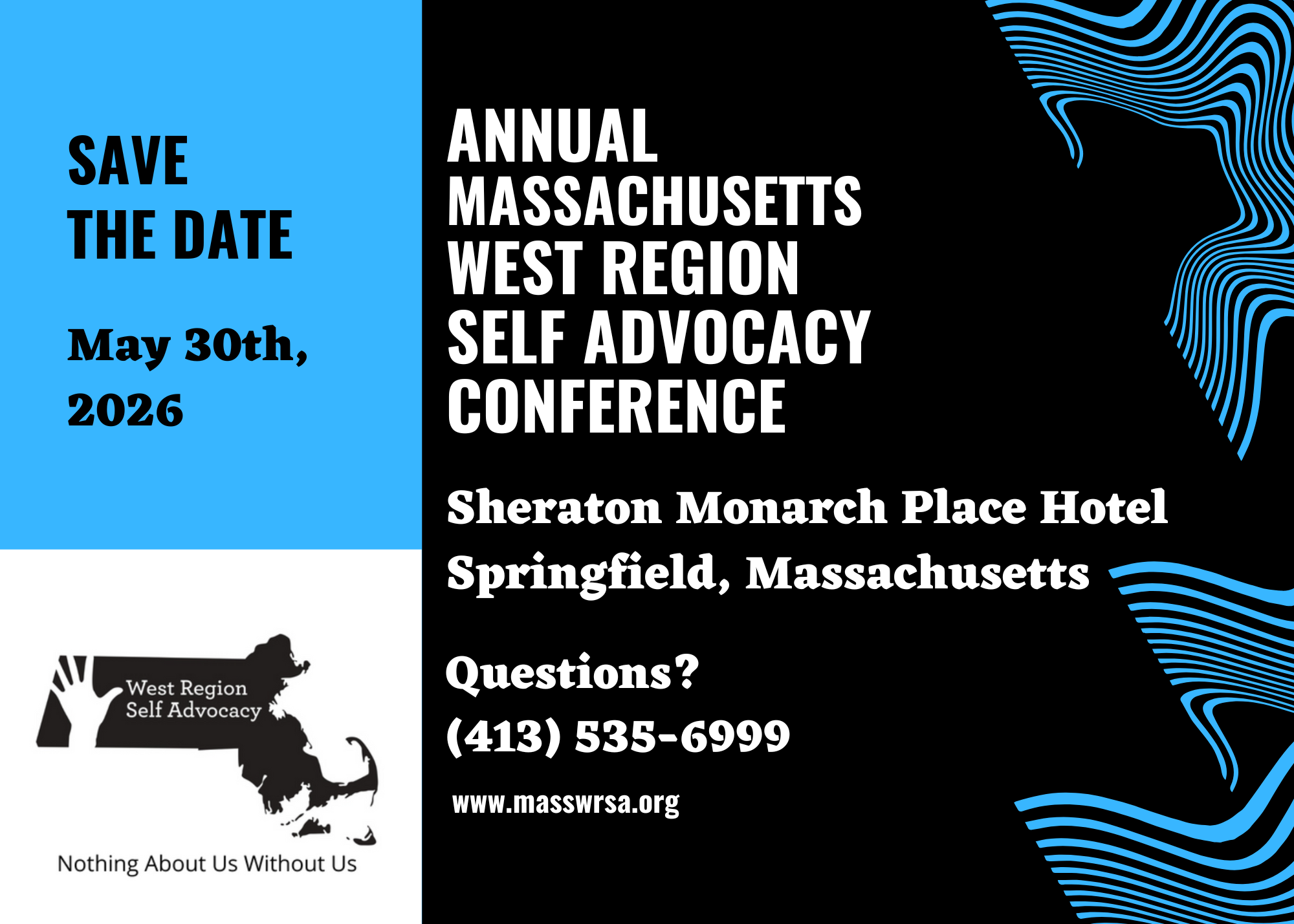 2026 Conference We are happy to announce the 2026 Annual Massachusetts West Region Self Advocacy Conference will take place on May 30, 2026, at Sheraton in Springfield, MA Theme: Reaching for the Stars Call for Presenters Keynote Speaker Application 2026Download Workshop Application 26Download